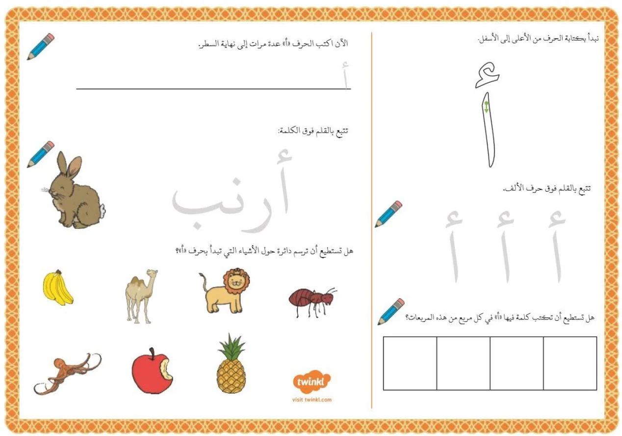 These Arabic alphabet worksheets PDF are ideal for: